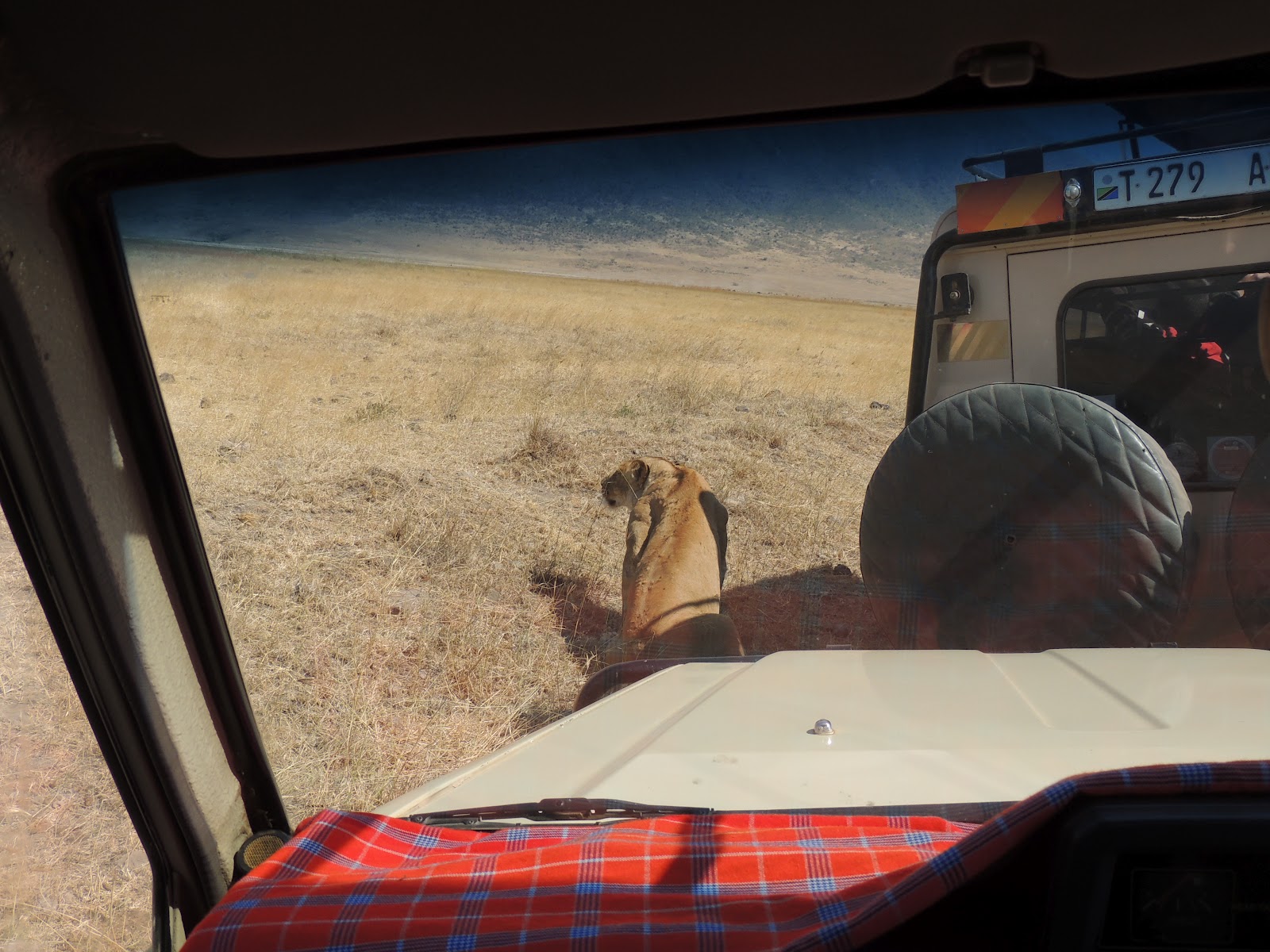 We had just seen the Black Rhino and then noticed a lot of trucks parked about 1000 feet away. Jake took the camera and captured some Lionness pictures. Here is Panthera leo:
